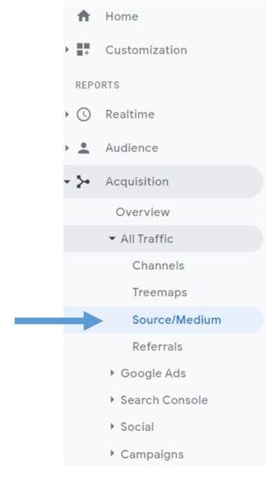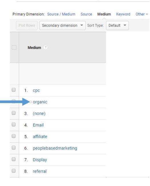 Από εκεί, επιλέξτε το Medium ως την κύρια ιδιότητά σας . Αυτό θα σας επιτρέψει να δείτε τα διάφορα μέσα που οδηγούν την επισκεψιμότητα στον ιστότοπό σας, συμπεριλαμβανομένης της οργανικής επισκεψιμότητας.